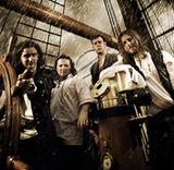 Alestorm BiographyAlestorm is a multi-national folk metal band originally from Perth, Scotland. Their music is characterized by a pirate theme, and as a result they have been dubbed a "pirate metal" band by many critics and their fanbase. After signing to Napalm Records in 2007, their debut album Captain Morgan's Revenge, was released on 25 January 2008. Black Sails at Midnight, the band's second album, was released on 27 May 2009. The band's third album, Back Through Time, was released on 3 June 2011. The fourth album from the band, Sunset on the Golden Age, was released in August 2014. Their fifth album No Grave But the Sea was released on 26 May 2017. Their sixth and latest album, Curse of the Crystal Coconut, was released on 29 May 2020. The band was founded in 2004 as Battleheart, a studio project by Christopher Bowes and Gavin Harper. Originally intended as a standard power metal band, the success of song "Heavy Metal Pirates" convinced the band to permanently adopt a pirate theme and incorporate folk metal elements into their music. Gavin and Christopher recorded & released two independent demos in 2006, which were received well by the local metal community. The band began to perform live in 2006, with a lineup consisting of Bowes (vocals and keytar), Harper (guitars), Dani Evans (bass) and Doug Swierczek (drums). Doug Swierczek eventually left the band later that year and was replaced by Ian Wilson. After a period of inactivity, in late 2007 Battleheart sent their demos to Napalm Records, and the band was promptly offered a record deal. After being signed by Napalm Records, the band changed their name from Battleheart to Alestorm. Their debut album, Captain Morgan's Revenge, was released in early 2008. By September 2008, original guitarist Gavin Harper had left the band. Tim Shaw was Harper's replacement, but after a brief period of touring, was fired from the band. To fill the guitarist position, Dani Evans switched instruments from bass to guitar, and Gareth Murdock of Waylander joined as the replacement bassist. The band's 2nd album Black Sails at Midnight was released in May 2009. In March 2010, Ian Wilson left the band and was replaced with a new drummer named Peter Alcorn. Alestorm's third album, Back Through Time, was Alcorn's first appearance on an Alestorm album. In October 2011, Elliot Vernon joined the band as keyboard player and performing screamed / death metal vocals. The band released their fourth record entitled "Sunset on the Golden Age" on 1 August 2014, reaching the #1 position in the UK Rock Chart. In October 2016, Christopher Bowes announced during a concert on the Super Smashed Turbo Tour that the band planned to begin recording a fifth studio album in January 2017. The fifth record, entitled "No Grave But the Sea", was released on 26 May 2017. On 8 January 2020, the band announced the title of their sixth studio album, "Curse of the Crystal Coconut". This was released on May 29th, 2020. Prior to its release, Alestorm released the singles "Treasure Chest Party Quest", "Tortuga" (feat. Captain Yarrface of Rumahoy) and "Fannybaws". Alestorm is generally classified as pirate metal, folk metal, power metal, heavy metal, and hard rock. The band refer to themselves as "True Scottish Pirate Metal" and are identifiable by the pirate-themed lyrics in their songs. Alestorm's music utilizes the upbeat epic style of power metal with many orchestrations commonly found in folk metal. Album recordings feature heavy use of real trumpets and trombones, whilst implementing accordion synths, fiddle and tin whistle to convey a pirate sea shanty feel. Alestorm uses factors of absurdity to bring a jocular feel to their music, incorporating irreverent lyrical themes while retaining a tenuous connection to pirates. They have also been known to experiment with different metal genres, going from songs that are predominantly thrash metal ("Black Sails at Midnight") to a switch to a black metal sonority mid-song ("Death Throes of the Terrorsquid"). The band's later albums have begun to incorporate more screamed vocals by keyboard player Elliot Vernon, adding hints of metalcore ("Magnetic North") and death metal ("1741 – The Battle of Cartagena") to the band's sound. Official bio: Avast, ye landlubbers! From the deepest darkest depths of the Caribbean comes Alestorm, a drunken band of pirates on an epic quest to drink your beer, steal your rum, and be the greatest damn band that ever did sail the seven seas! From humble beginnings playing shows to farm animals in a field somewhere in Eastern Scotland, Alestorm have evolved into an international party machine hellbent on conquering album charts and festival stages throughout the world, with their infectious brand of 'Pirate Metal' and their dashing good looks. Also, they have a giant inflatable duck. Does your band have a giant inflatable duck? No. I didn't think so. Last updated: |