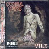 Released on {@Metal Blade} in 1996, {^Vile} is the first {$Cannibal Corpse} recording to feature vocalist {$George "Corpsegrinder" Fisher}. The band had built up a considerable following within the {\death metal} community, and that success continued as {$Fisher} brought a vocal dynamism and character that livened up the band's six-year-old sound. {$Fisher}'s ability to match the musical intensity and rhythm of {^Vile}'s more complicated assemblages of riffs created a more sophisticated yet equally tortuous essence. Both the album art and song titles -- while gruesome to the extreme -- were somewhat toned down when compared to earlier {$Cannibal Corpse} efforts. The band members might have been put off by so many accusations of novelty, and intent on proving their worth as musicians. {^Vile} demonstrates a commitment to musical growth: Tracks like {&"Devoured by Vermin"} and {&"Bloodlands"} feature more complex, focused, and just plain interesting musical ideas as well as precise execution. Fans of {\death metal} who haven't yet discovered {$Cannibal Corpse} would be wise to give {^Vile} an open-minded listen, in order to understand how this group has managed to pull off thousands of successful shows and maintain such a rabid following. [A Japanese version added a bonus track.] ~ Vincent Jeffries, All Music Guide