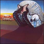 {$Emerson, Lake & Palmer}'s 1970 eponymous LP was only a rehearsal. It hit hard because of the novelty of the act (allegedly the first supergroup in {\rock} history), but felt more like a collection of individual efforts and ideas than a collective work. All doubts were dissipated by the release of {^Tarkus} in 1971. Side one of the original LP is occupied by the 21-minute title epic track, beating both {$Genesis}' {&"Supper's Ready"} and {$Yes}' {&"Close to the Edge"} by a year. Unlike the latter group's cut-and-paste technique to obtain long suites, {&"Tarkus"} is a thoroughly written, focused piece of music. It remains among the Top Ten classic tracks in {\progressive rock} history. Because of the strength of side one, the material on the album's second half has been quickly forgotten -- with one good reason: it doesn't match the strength of its counterpart -- but {&"Bitches Crystal"} and {&"A Time and a Place"} make two good {\prog rock} tracks, the latter being particularly rocking. {&"Jeremy Bender"} is the first in a series of {\honky tonk}-spiced, Far-West-related songs. This one and the {\rock & roll} closer {&"Are You Ready Eddy?"} are the only two tracks worth throwing away. Otherwise {^Tarkus} makes a very solid album, especially to the ears of {\prog rock} fans -- no {$Greg Lake} acoustic {\ballads}, no lengthy {\jazz} interludes. More accomplished than the trio's first album, but not quite as polished as {^Brain Salad Surgery}, {^Tarkus} is nevertheless a must-have. [This version of the album has been remastered.] ~ François Couture, All Music Guide
